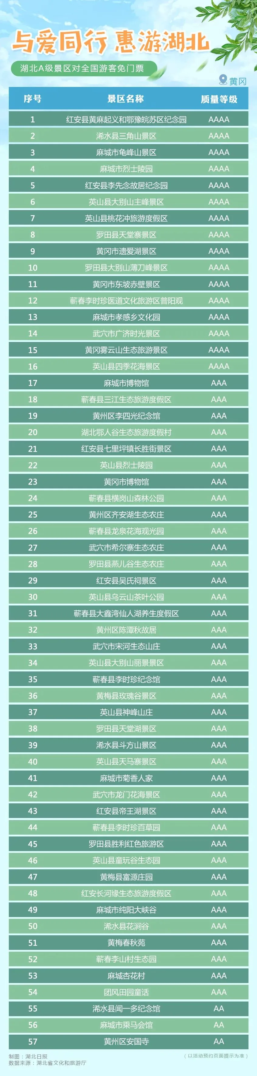 刚刚宣布!湖北所有A级景区对全国游客免门票(附名单)