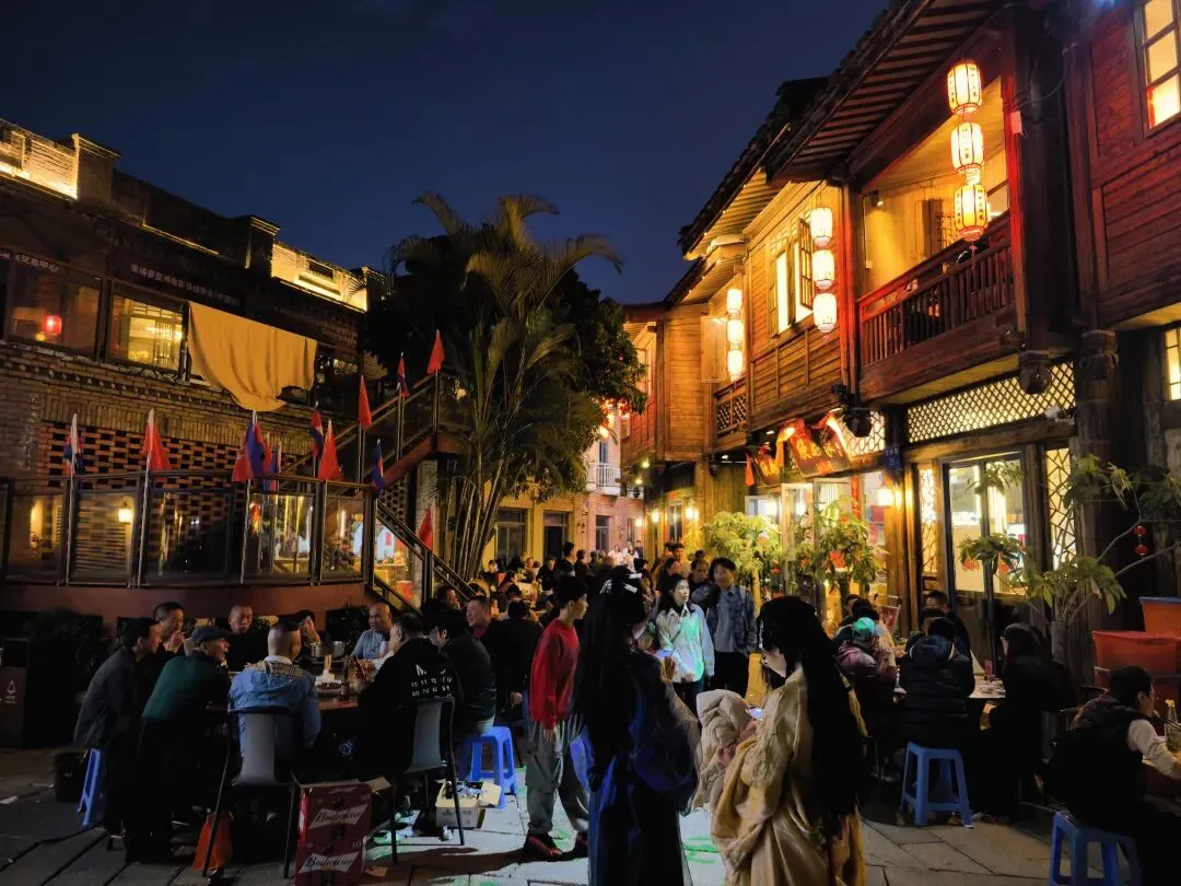 这些天生意是真的好,路上也都摆满了餐桌~