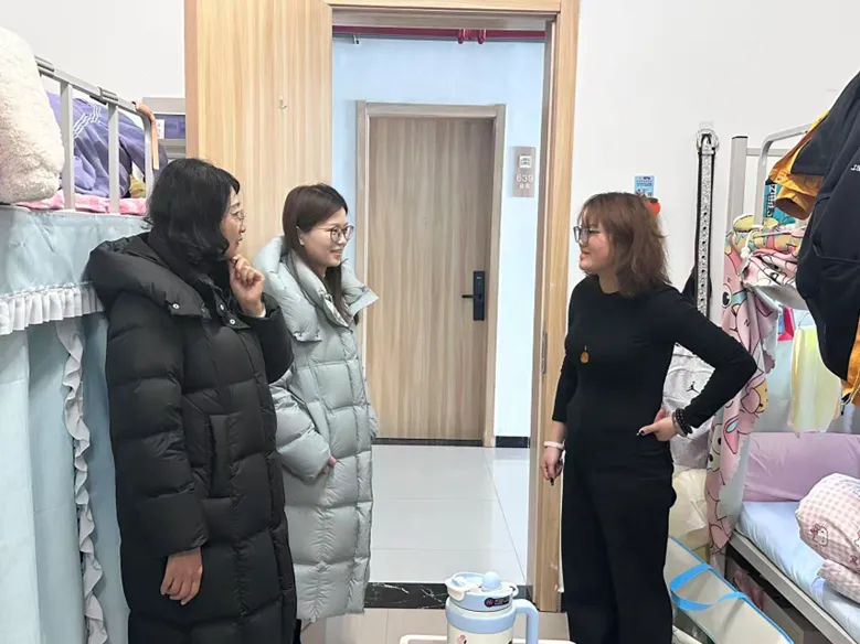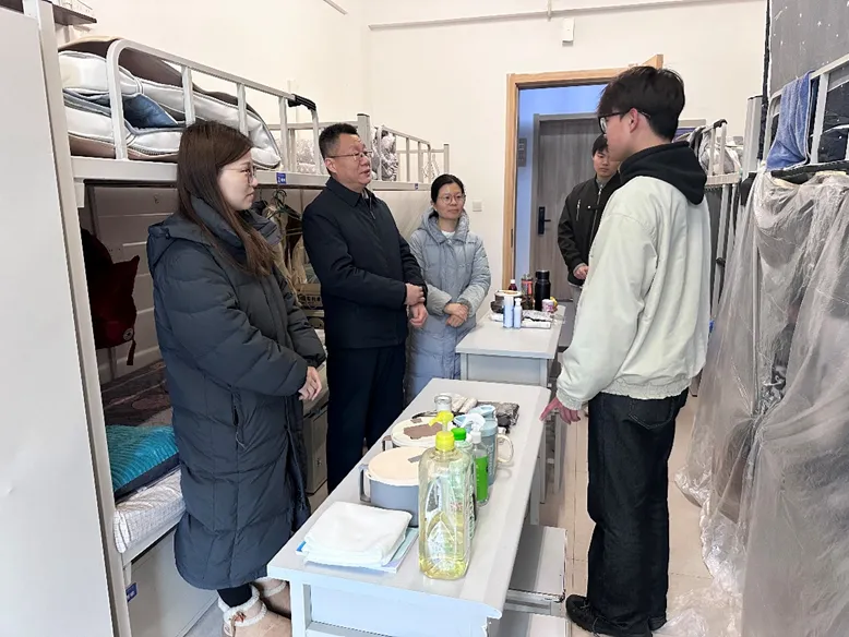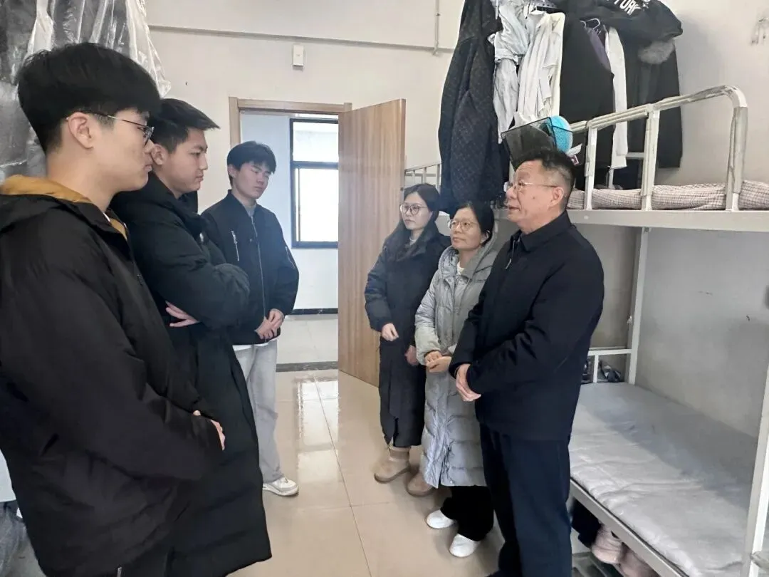走访过程中,走访组细致查看各宿舍的环境卫生、住宿设施运行情况,全面排查宿舍用电、消防等安全隐患,从细节处为学生营造安全的居住环境。与同学们交流时,大家拉家常、话成长,亲切询问返校行程是否顺利、假期生活有哪些收获、新学期学习规划如何制定,耐心倾听同学们在学业发展、校园生活中的想法与需求,对全体学子顺利返校表示热烈欢迎。