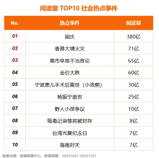 本报告以微博热搜话题及相应用户行为数据为基础,对第四季度热点进行全景式剖析,系统呈现热点内容、传播趋势及舆论倾向。报告从数据维度解读用户关注焦点,详细展现用户在社交媒体上的心智变化和内容消费方向。同时,通过具体事件和案例的分析,呈现微博上热点内容如何演化破圈的。