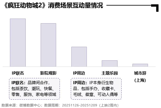 时隔9年,《疯狂动物城2》震撼上映,再次点燃了电影市场。两周内就斩获30亿票房,堪称王者归来。微博上170余个热搜和26亿的话题阅读量更是指数级地放大了影片的声量。值得关注的是,《疯狂动物城2》的成功远超票房范畴,微博数据显示,IP联名的互动用户量已经超过对电影本身互动的用户量。此外,从周边到迪士尼主题乐园再到上海旅游,已经构建起了一个渗透日常生活的“IP引力场”。许多用户即使未观影也成为了IP的消费者。这种模式将电影热度高效转化为跨圈层的消费动能,并为电影持续引流潜在观众。
