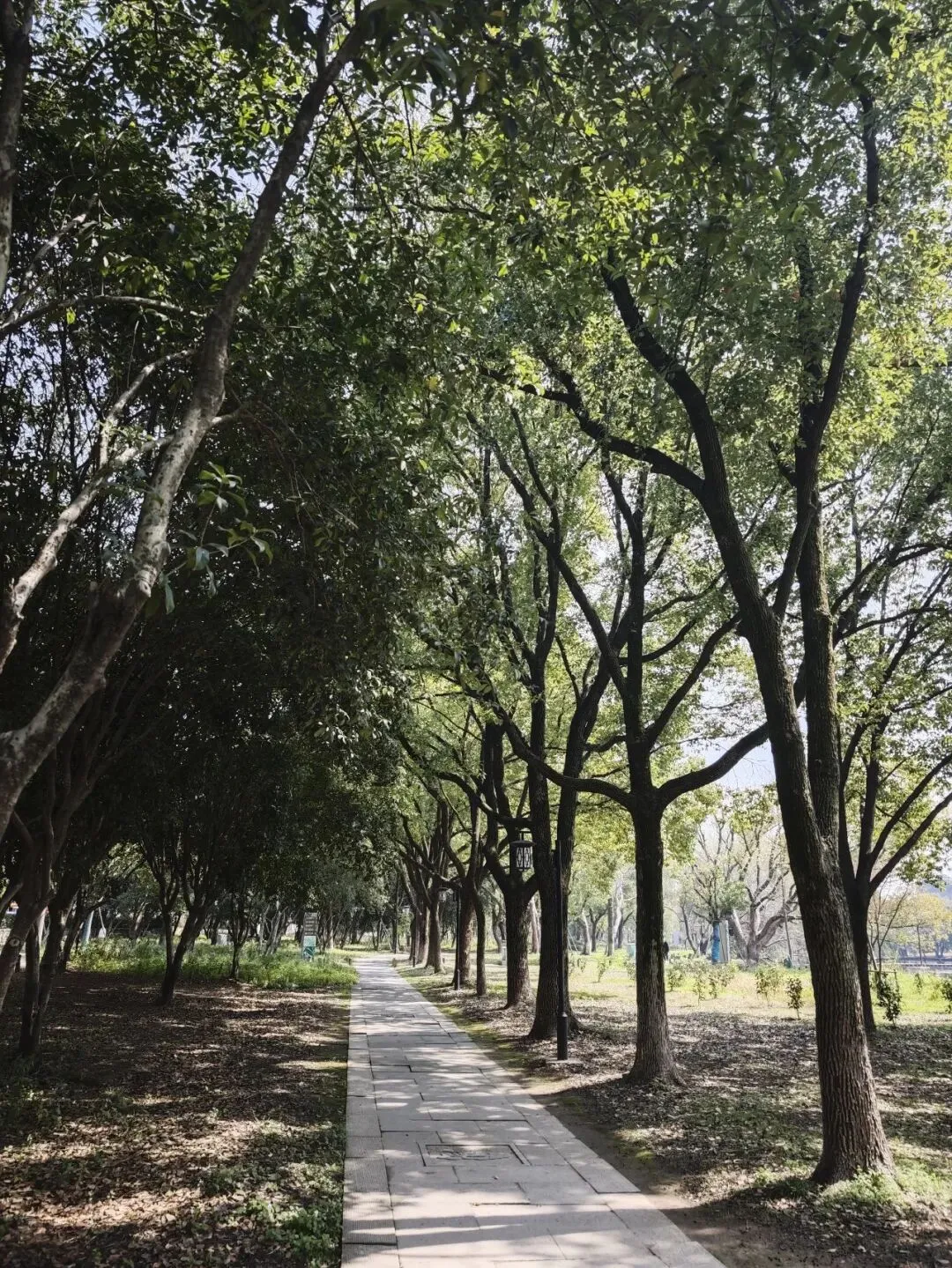 公园的游步道绿树成荫,很是休闲