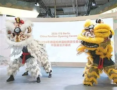 演员在2026柏林国际旅游交易会中国展区表演舞狮。新华社记者 张豪夫摄 近日,由中外文化和旅游交流中心联合ITB China、中国驻法兰克福旅游办事处、柏林中国文化中心共同主办的中国之夜暨“中国味道”主题旅游推广活动在德国柏林市中心举办。作为2026柏林国际旅游交易会期间的重要中国主题行业活动,中国之夜通过旅游推介、美食品鉴、文化展演、企业交流等方式,展示中国丰富多元的旅游资源和美食文化,助力中外文旅产业合作。此次活动也是中外文化和旅游交流中心2026年“你好!中国”主题海外路演活动的首站。 中外文化和旅游交流中心主任张维国在视频致辞中表示,活动将成为中外旅游业界展示资源、共话友谊、共促合作的重要平台。 柏林国际旅游交易会主办方德国柏林展览公司高级副总裁大卫·鲁茨表示,中国是全球最具活力和潜力的旅游市场之一,其数字化趋势与深度体验需求正在影响全球旅游产品与营销策略的发展。本次活动是连接中国旅游业界与全球市场的重要契机。 中旅旅行入境部欧洲市场室总监周占峰围绕中国标志性旅游资源和入境旅游便利化措施进行中国整体旅游形象推介,重点推介了美食探索、文化深度游和高科技体验等新兴旅游产品。 山东、湖北、重庆、澳门和陕西延安是本次活动的合作目的地。在山东长期学习工作的德国小伙司梵克讲述了自身经历的“好客山东”故事,现场的青岛啤酒和孔府糕点展示了齐鲁大地的特色风味。湖北省中国旅行社副总经理朱鸿俊对话AI玩偶“豚宝”,展现数字赋能文创产业新业态,武当太极表演、文创黄油饼干和砖茶品鉴让现场观众感受荆楚之美。来自加拿大的凯文·哈特,结合自身经历表达对重庆“8D魔幻之城”的喜爱,涪陵榨菜、磁器口麻花等特色小吃也让观众得以一窥“火锅之城”的魅力。澳门特别行政区政府旅游局局长文绮华介绍了澳门作为世界遗产之城、联合国“美食之都”的文旅资源,舞狮表演、牛油糕等让观众亲身感受澳门独特的中西文化融合之美。延安通过文创展示等方式,展现了雄浑壮美的黄土高原风情。