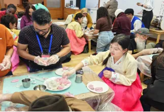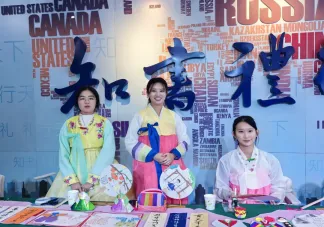 学生在外国团体朝鲜族非遗研学课程中担任助教