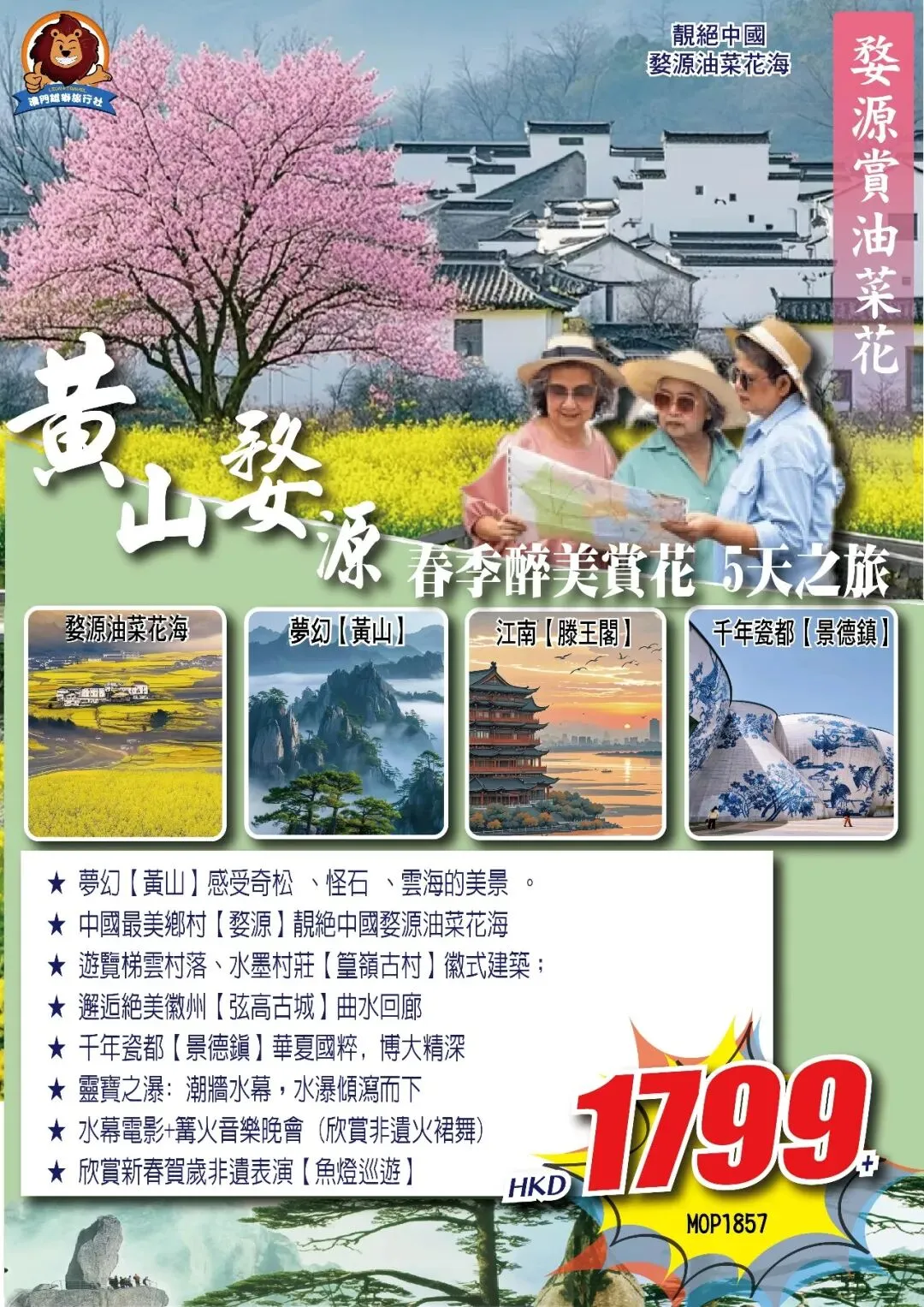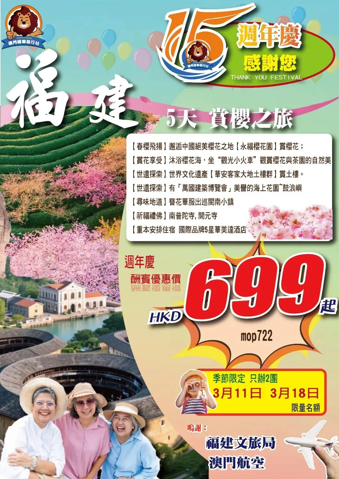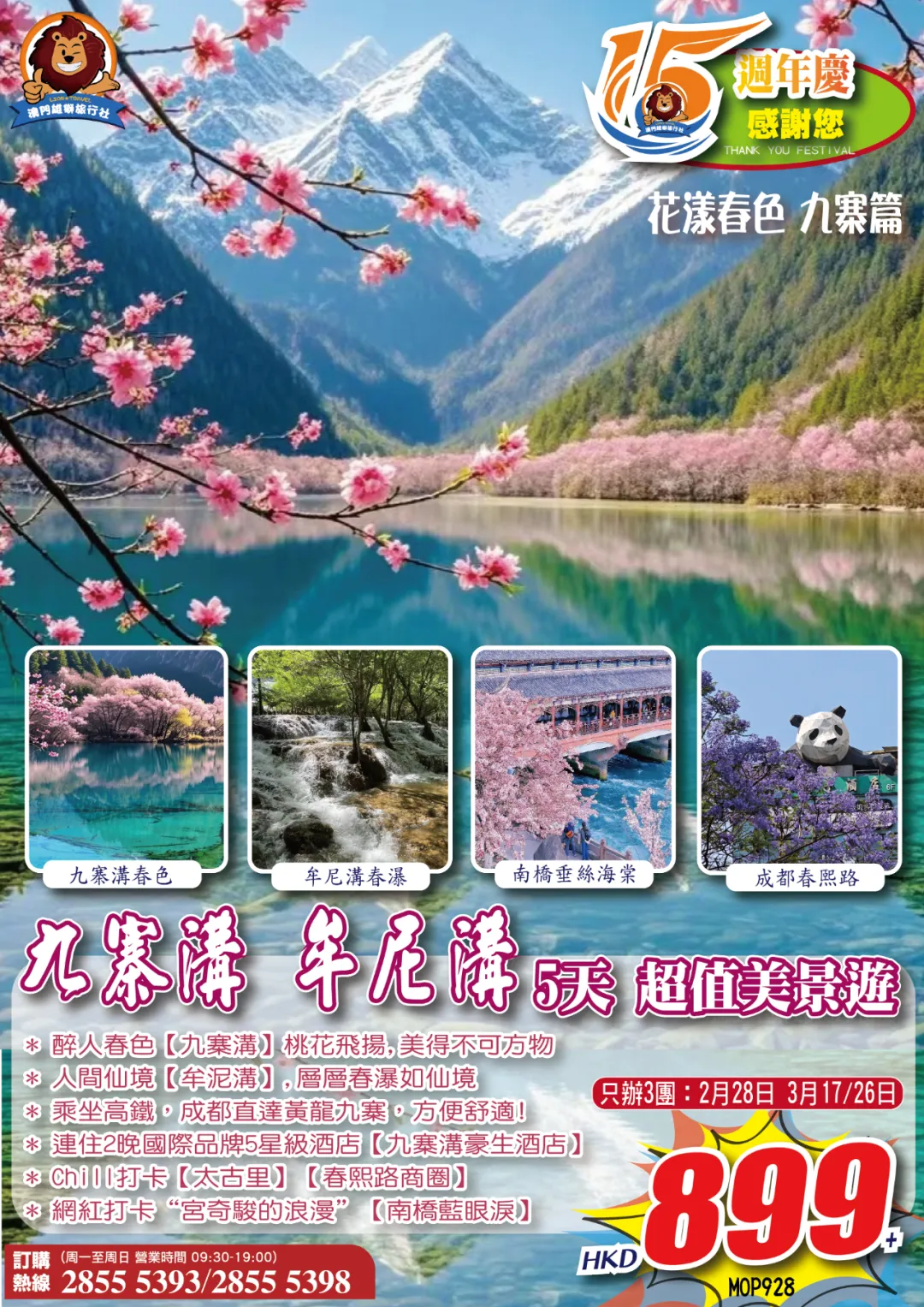 感謝關注【澳門雄獅旅遊】報名及咨詢電話:28555393/28555398