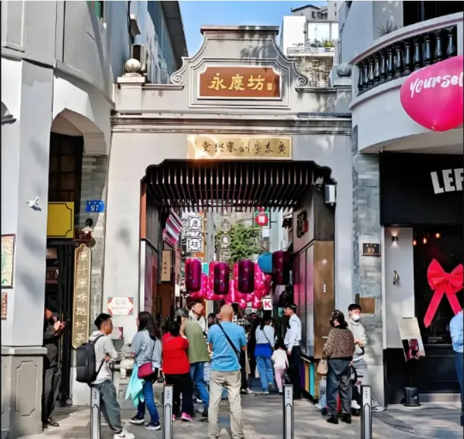 永庆坊位于广州市荔湾区西关恩宁路核心区域,是广州旧城微改造的文化新地标,被誉为“广州最美骑楼街”。永庆坊保留了青砖屋、红砖房、趟栊门、满洲窗、石板路等岭南特色建筑元素。永庆坊内有广州最完整的骑楼建筑群,这种建筑形式结合了欧陆与东南亚地域特点,既可抵挡风雨侵袭,又能遮挡炎阳照射,形成凉爽的环境。包括李小龙祖居、詹天佑故居、八和会馆、銮舆堂、宝庆大押等具有岭南特色的历史建筑。