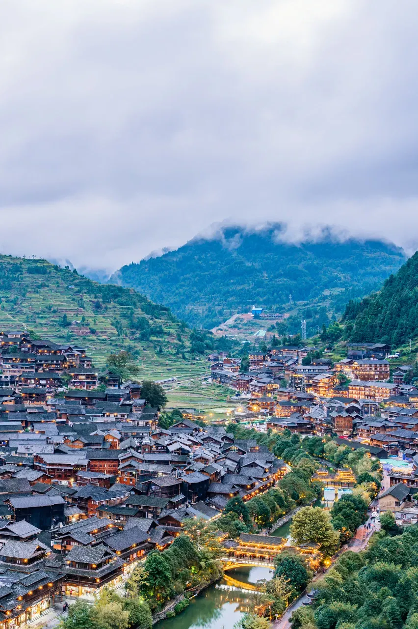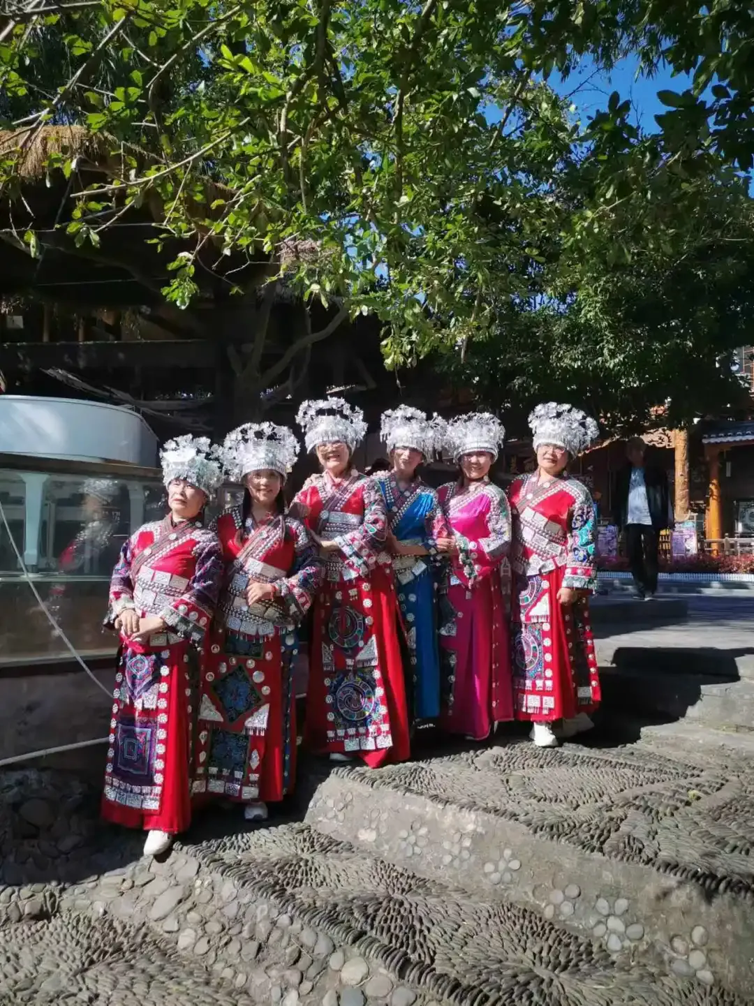 早餐后乘车约2小时,抵达国家AAAA级风景区【西江千户苗寨】。“观西江而知天下苗寨”,这里是世界上最大的苗寨,也是苗族最后的乌托邦。由5个依山而建的自然村寨相连而成,高差近百米的峡谷内,鳞次栉比的分布着数千座吊脚楼。一条白水河将村子一分为二,宛若为西江缠上了一圈腰带,瞬间有了灵气,白水河上,八座风雨桥依次排列,婀娜多姿的苗家姑娘,就倚靠在桥上的美人靠里,展现出曼妙的身姿,白水河边,随处可见的苗族歌舞,服饰,为这里添加了一笔民族风情,跟街边的阿公阿婆学上几句苗语。苗语“咪公”就是打招呼,“呀啦米”就是我爱你。