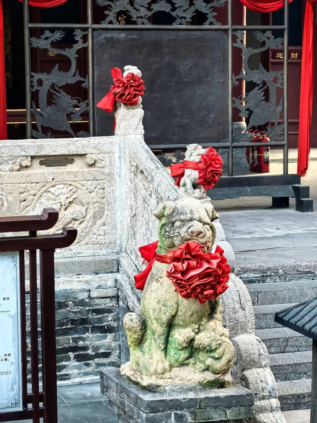 献殿台阶前的石狮子猪里猪气的