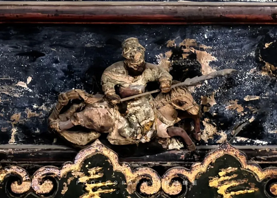 “乾坤正气”匾局部:关公骑马征战图