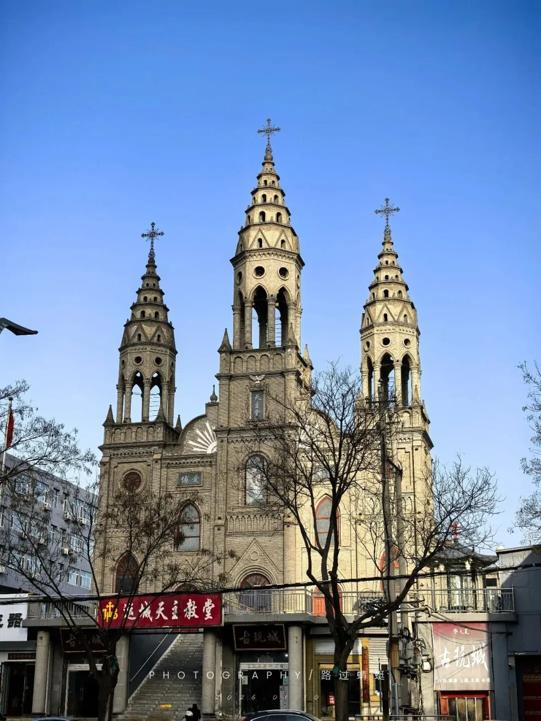 出盬街北口,马路斜对面是运城天主教堂。