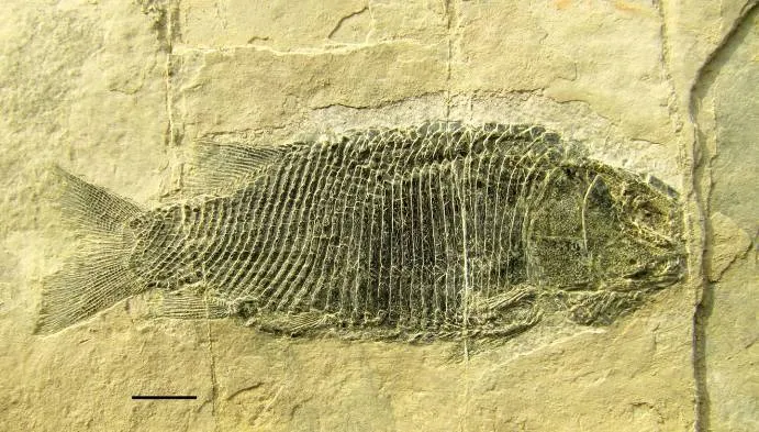 苏氏圣乔治鱼以独特的围眶骨为特点,它是罗平生物群中数量最多的新鳍鱼类,在鱼化石富集的层面上每平方平均有20多条。