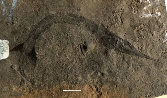 安氏马可波罗鱼身体几乎没有鳞片,是一类非常特殊的新鳍鱼类。它的颌部类似更为先进的真骨鱼类,前鳃盖呈“L”形,而且上鳍条的支持骨上也存在异化。让人惊奇的是这类小型鱼类居然有着非常广泛的分布范围,从古特提斯洋的东西两岸都有分布。