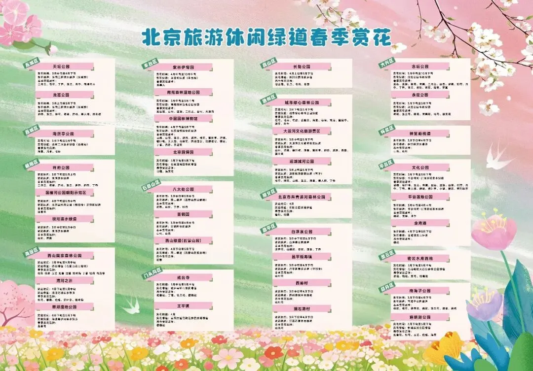 春风十里,繁花满径,绿道为媒。趁春光正好,循着这份北京旅游休闲绿道春季赏花地图,奔赴一场与春日的美好邂逅,在花海间漫步,在绿道上徜徉,于一步一景中感受京城春日的无限浪漫,解锁独属于你的春日漫游新体验!