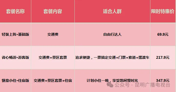 作为“互联网+旅游交通”的全新尝试,这条专线打造了从出发到返程的闭环服务。早鸟价低至69.9元,用超高性价比,解锁昆明到鸡足山的便捷新体验。打开“滴滴出行”APP➜首页点击“站点巴士”➜选择“昆明至鸡足山”专线即可预定。