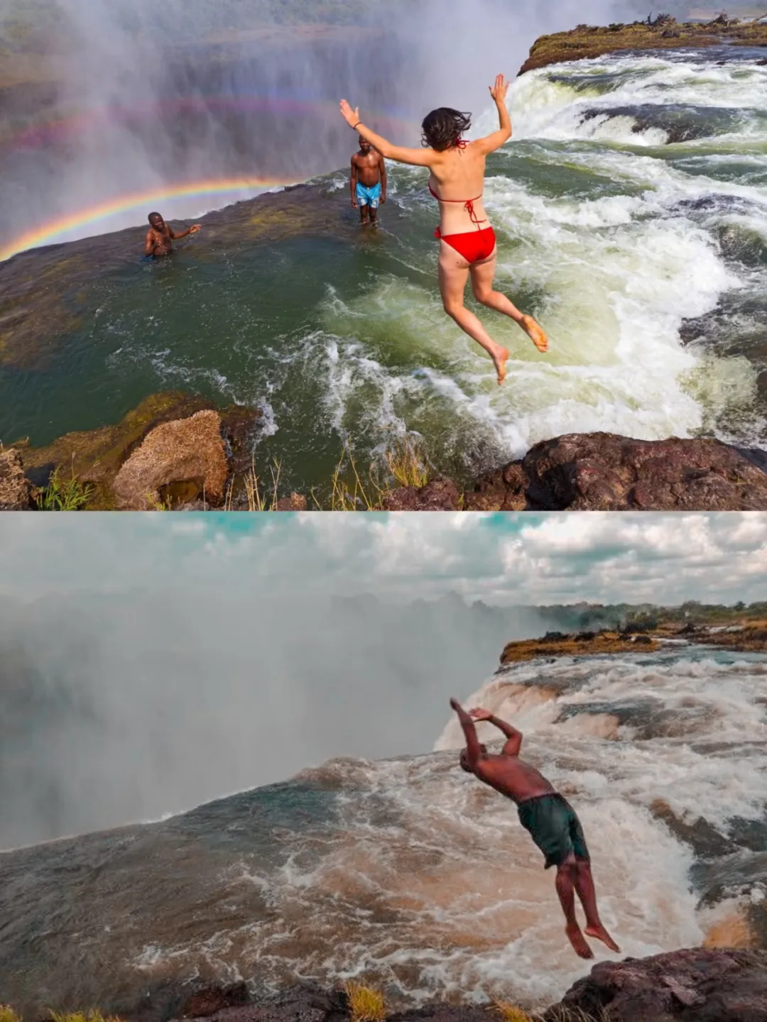 因此,勇敢者们选择在旱季跳进池内游泳,而洪水季则可以观赏到最壮观的瀑布。当瀑布处于旱季时,碧蓝色的池水静止如死,没人知道它是“魔鬼”——只有流亡在瀑布下游的浮尸,警告着人们:走近我,淹没你。