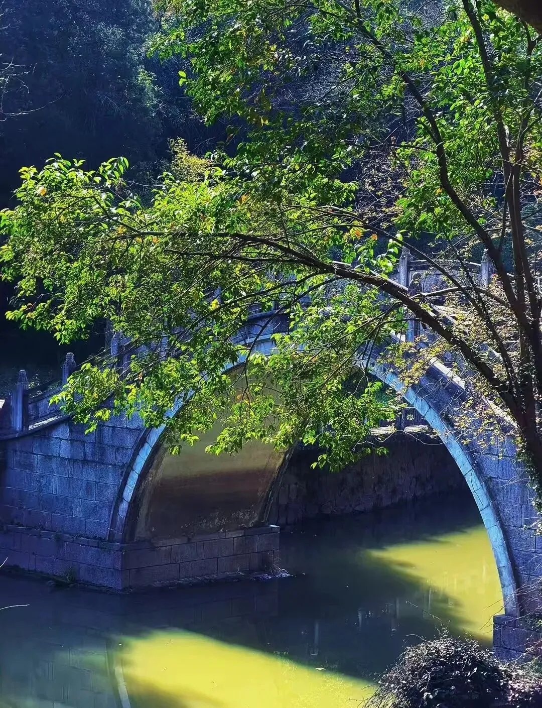 拍照机位:池畔石桥上,以亭台为背景拍倒影;博采桥上,流水倒影与古建筑同框。