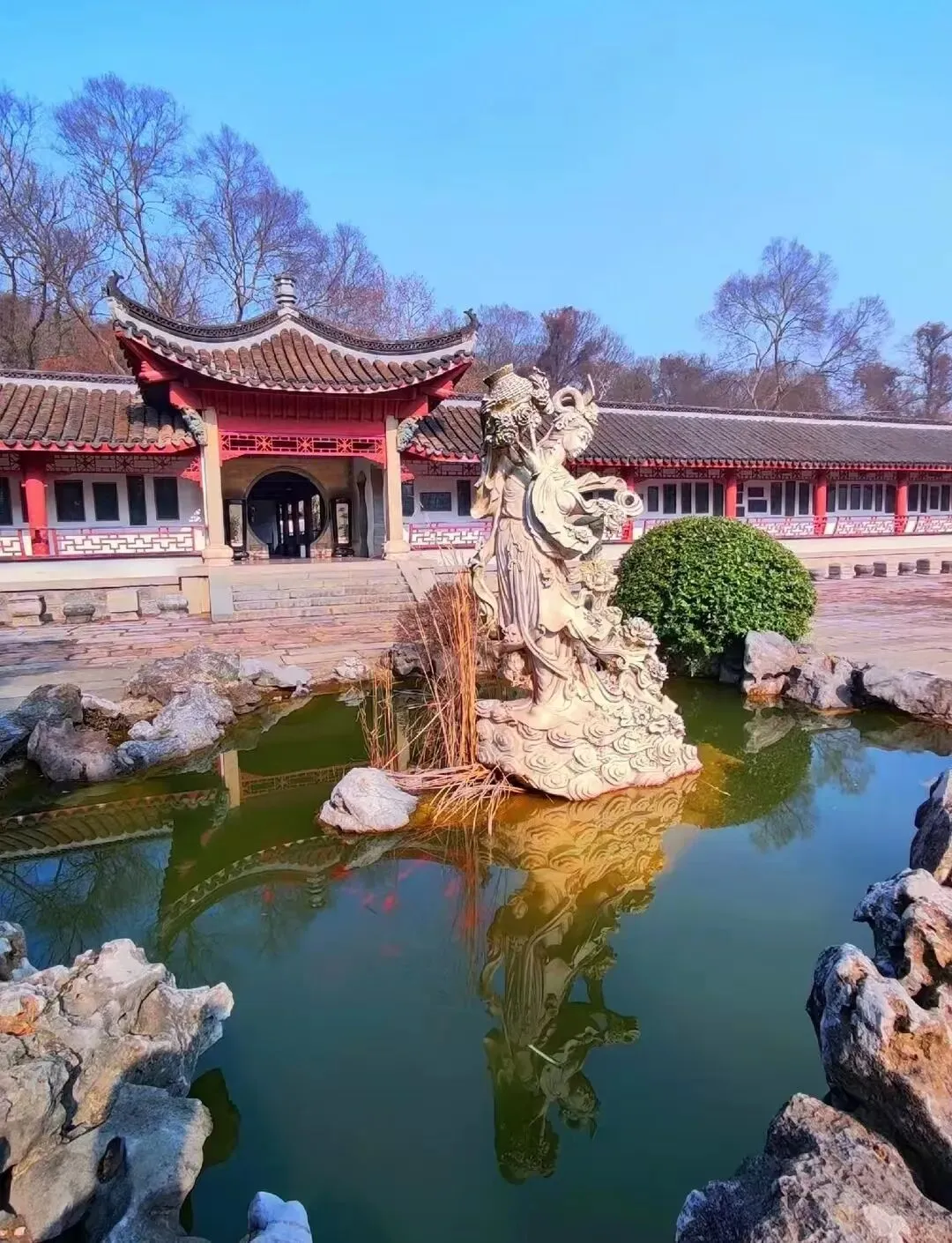 拍照机位:楼后谪仙园,亭台楼阁、曲径通幽,穿汉服站在池塘边,锦鲤游过倒影,随手一拍都是古风大片。