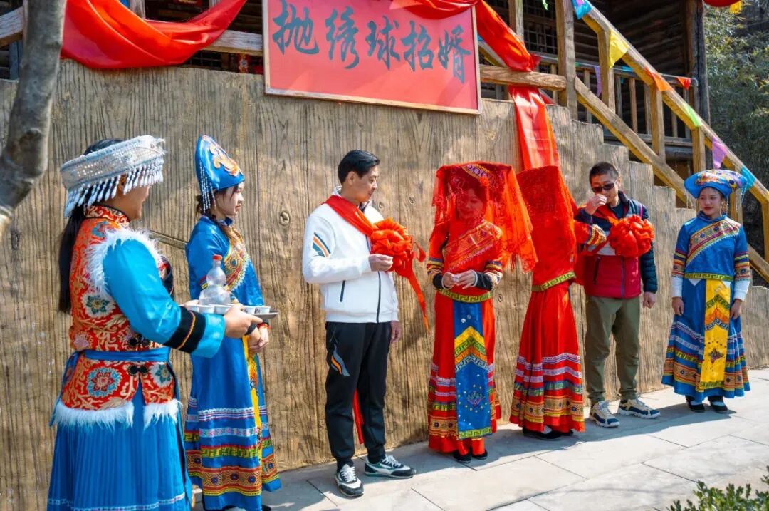 对山歌、抛绣球、迎娶亲。与“刘三姐”对唱山歌,亲身感受迎娶“刘三姐”的喜悦。沉浸在浓郁的乡土生活气息,领略原汁原味的少数民族风情