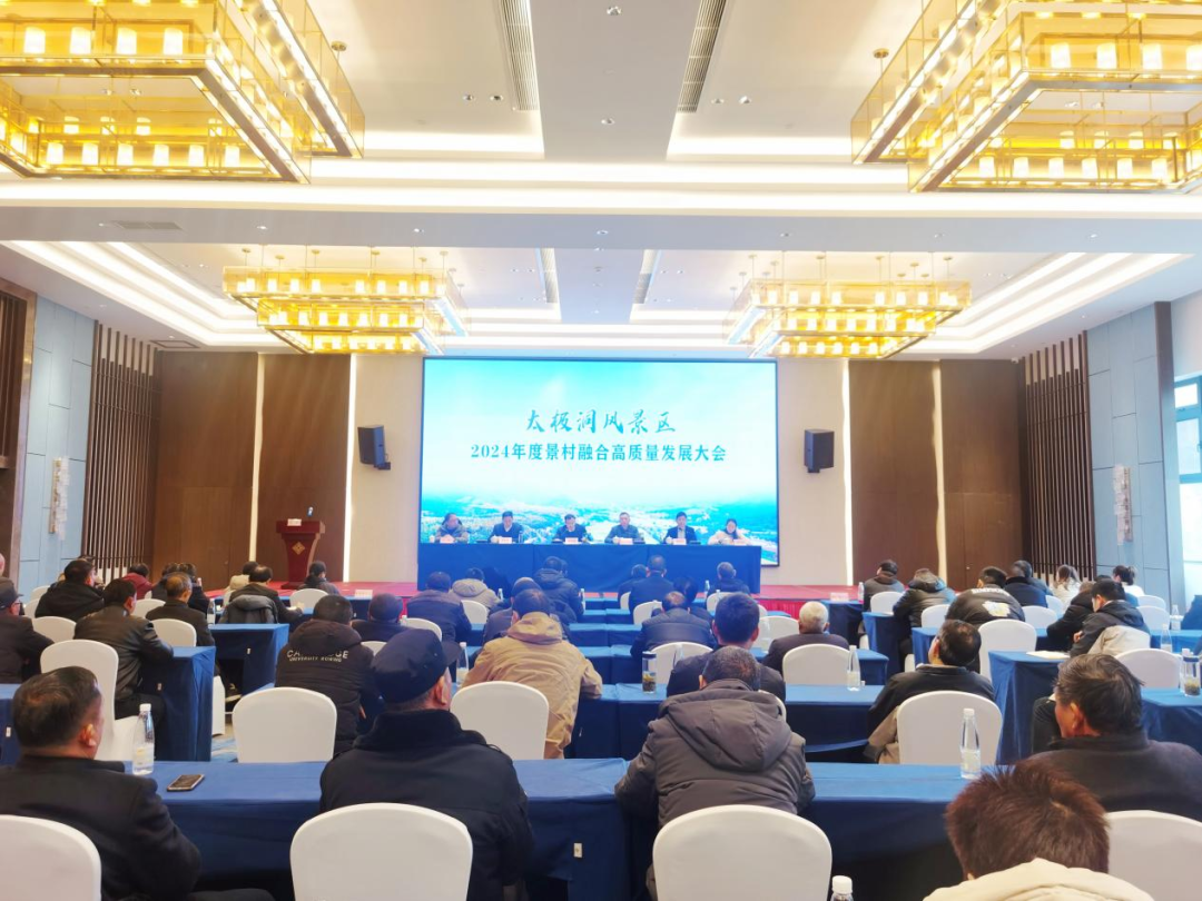 2月26日上午,太极洞风景区2024年度景村融合高质量发展大会在太极·金陵山庄召开,太极洞管委会、派出所全体干部职工,景区各企业负责人,桃园村村支两委以及党员群众代表参加会议。
