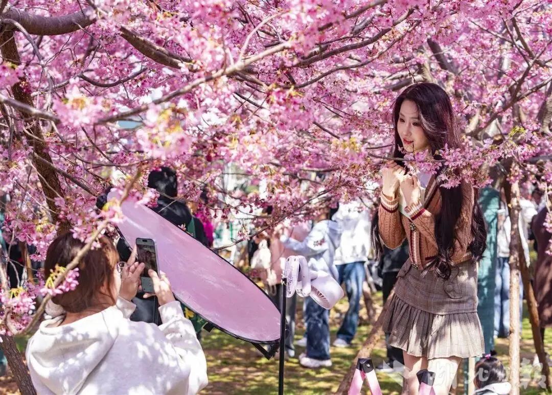 专家解释,樱花从初开到盛放通常需要约一周时间,只有当开花率达到70%至90%时,景观效果才最为震撼。根据现有气象条件与物候规律研判,3月25日至27日前后,全市樱花将迎来花量最集中的巅峰状态,是摄影爱好者和游客捕捉“粉色云海”的绝佳窗口期。