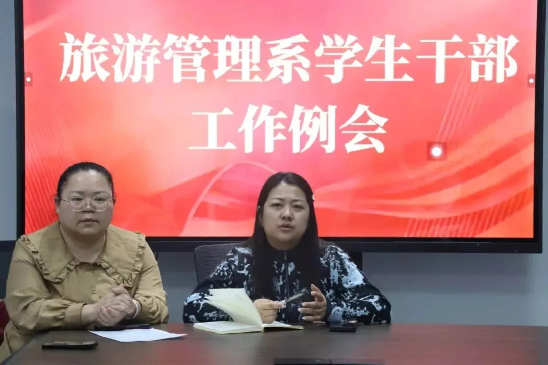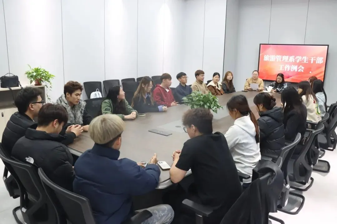 3月11日,旅游管理系于“一站式”学生社区服务中心召开学生干部工作例会。旅游管理系团总支书记李金霞、辅导员陈玲霞出席会议,全体学生干部参加会议。
