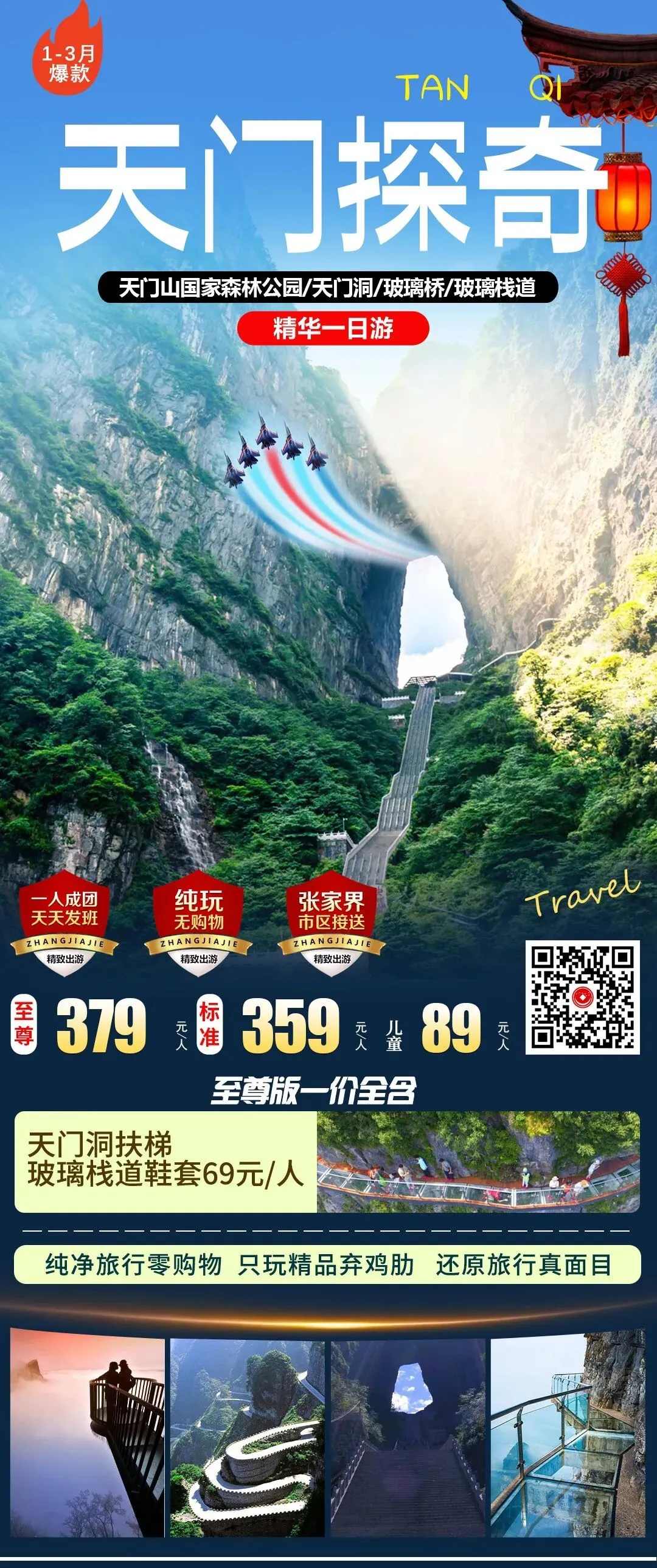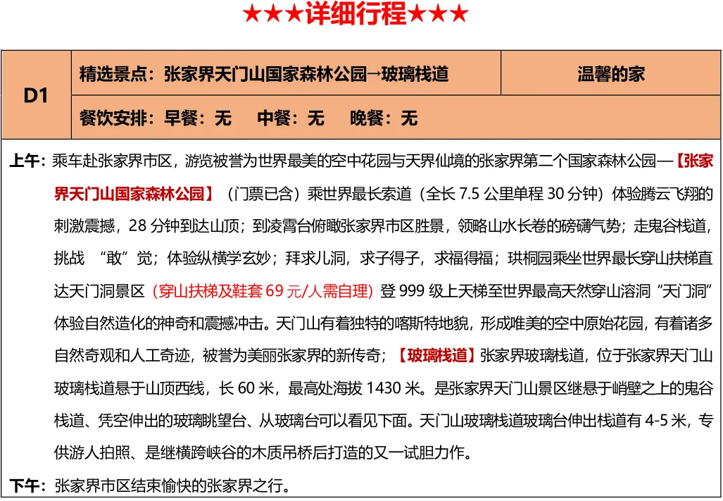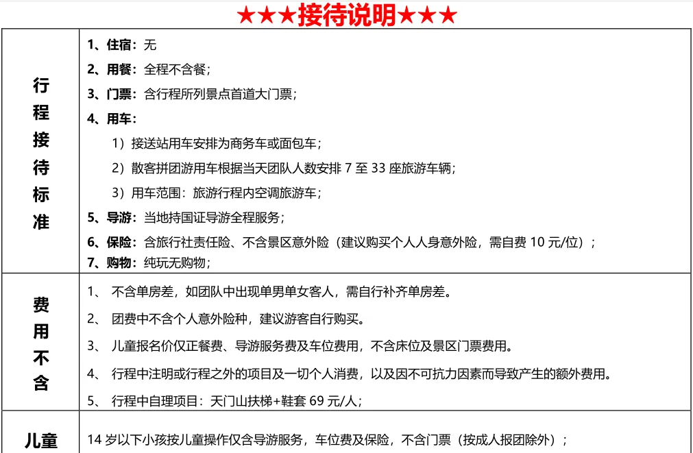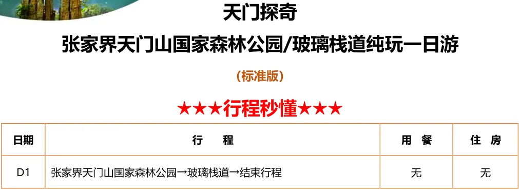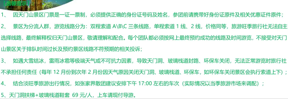 备注:成人需自理景区小交通69元(天门山扶梯+鞋套)