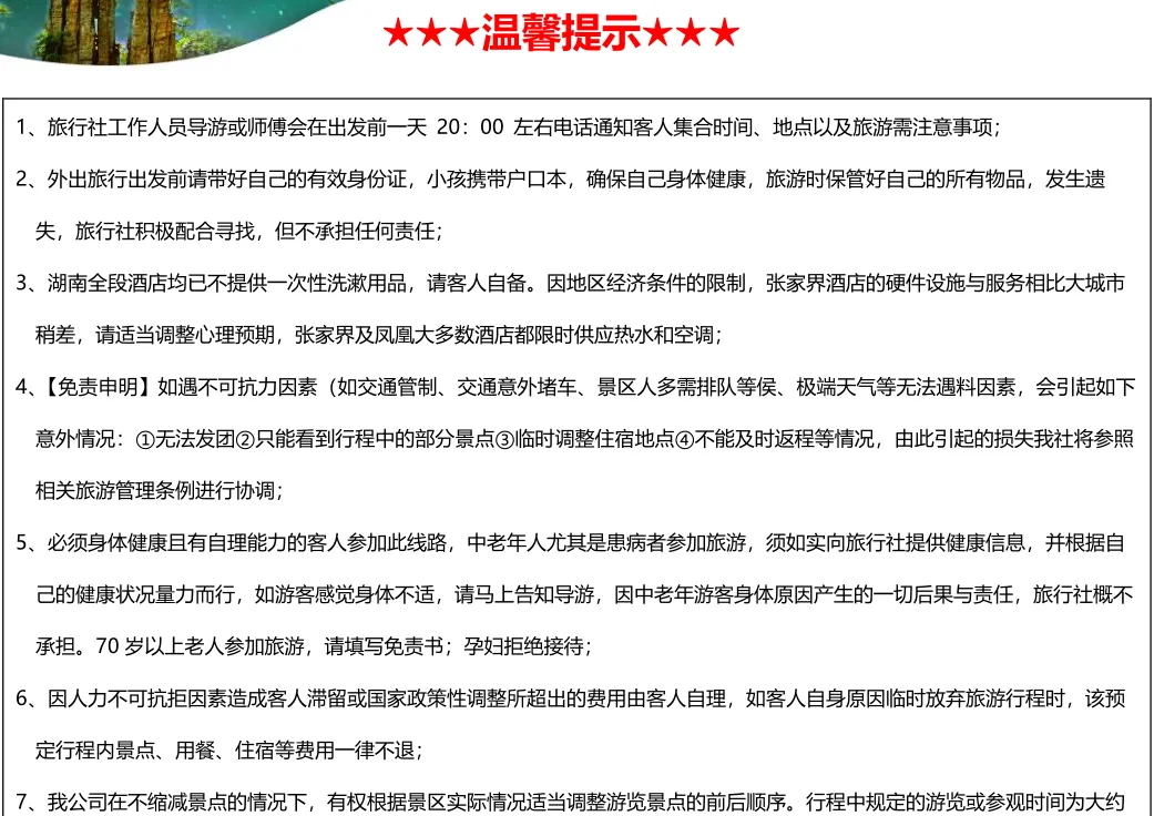 💛费用包含:张家界市区酒店接送+1天旅游车费+景区大门票+导游服务+保险