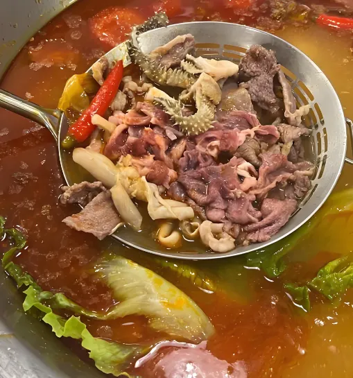 象州黄牛的牛杂嫩、滑、香,酸笋汤底酸辣开胃。涮完牛百叶再嗦一口河粉,鲜得眉毛跳舞。本地人忠告:吃完记得嚼口香糖,否则同事以为你生啃大蒜!推荐去武宣县城的“牛杂一条街”。