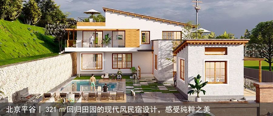 民宿的庭院设置绿化带和景观小品,与周边田园风光相协调,为游客提供一个宁静、舒适的休闲场所。