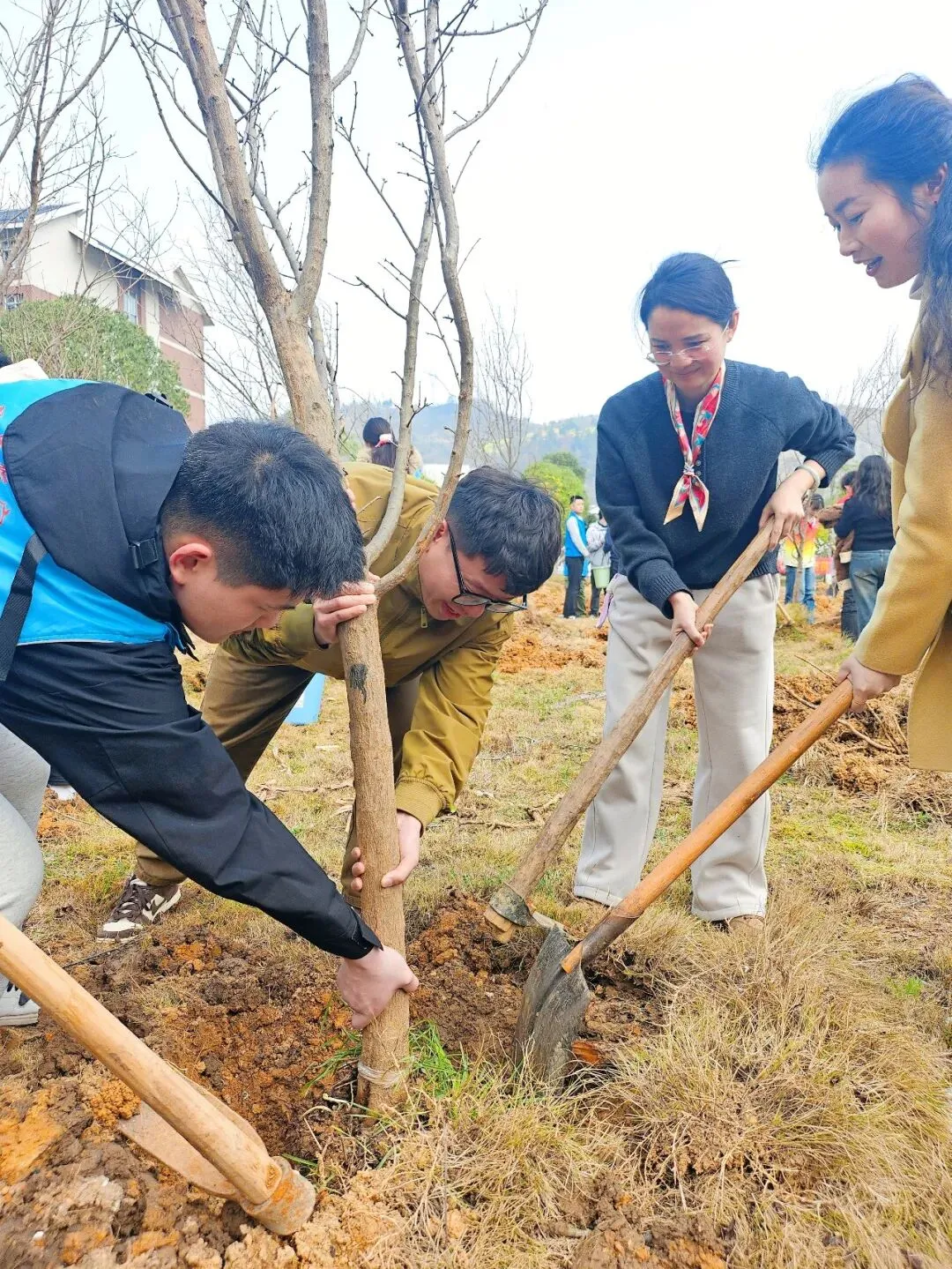 植树节之际,旅游管理学院师生发出春天的邀约:以双手培一抔土,用汗水浇一株苗,为校园添一抹属于我们的新绿。今天种下的不仅是一棵树,更是一份对未来的承诺——让每一次服务都饱含温情,让每一处风景都可持续。