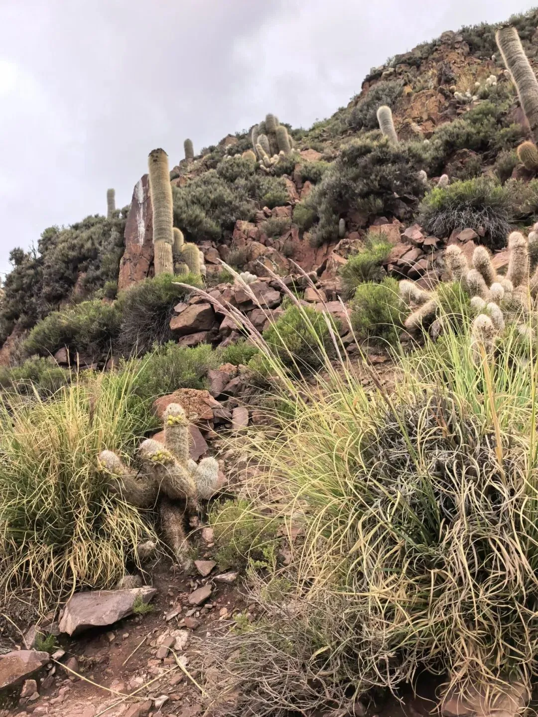 更奇异的是石上铺展的绿。初以为是苔藓,摸去却不柔软;绿色表皮布满黄色小点,像花又似孢蒴。查后方知,这是安第斯高原特有的垫状植物,荒漠的标志性物种。据说它每年仅长一二毫米,直径一米的植株已活过千年——那紧凑的结构,是为抵御强风与低温,在严酷中求生的静默智慧。