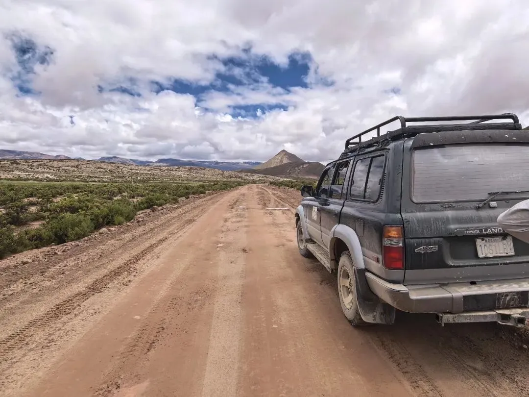 车在玻利维亚高原的土路上起伏,云触手可及,旷野望不到头。风裹着干燥尘土的气息扑面而来,远山沉默如时间本身。这里没有喧嚣,只有路、天空,与属于高原的无限辽阔。路仿佛没有终点,只有远方。