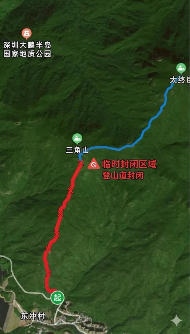 2.封闭范围:鲲鹏径第20段(东涌至三角山)前半段登山道。