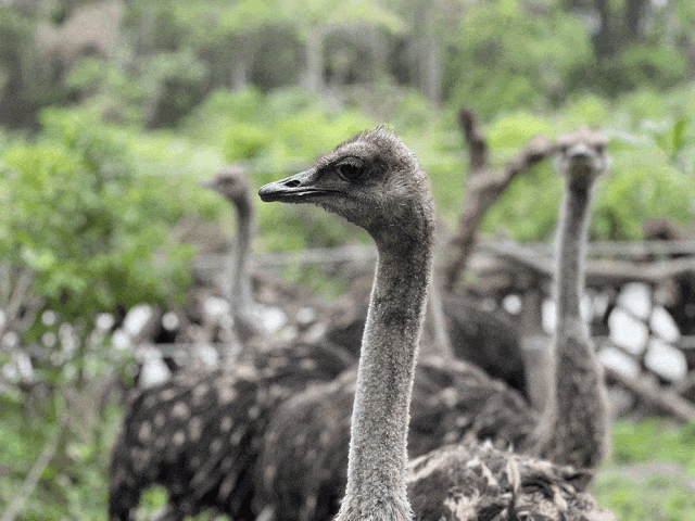 绯红金刚鹦鹉和蓝黄金刚鹦鹉们排着队