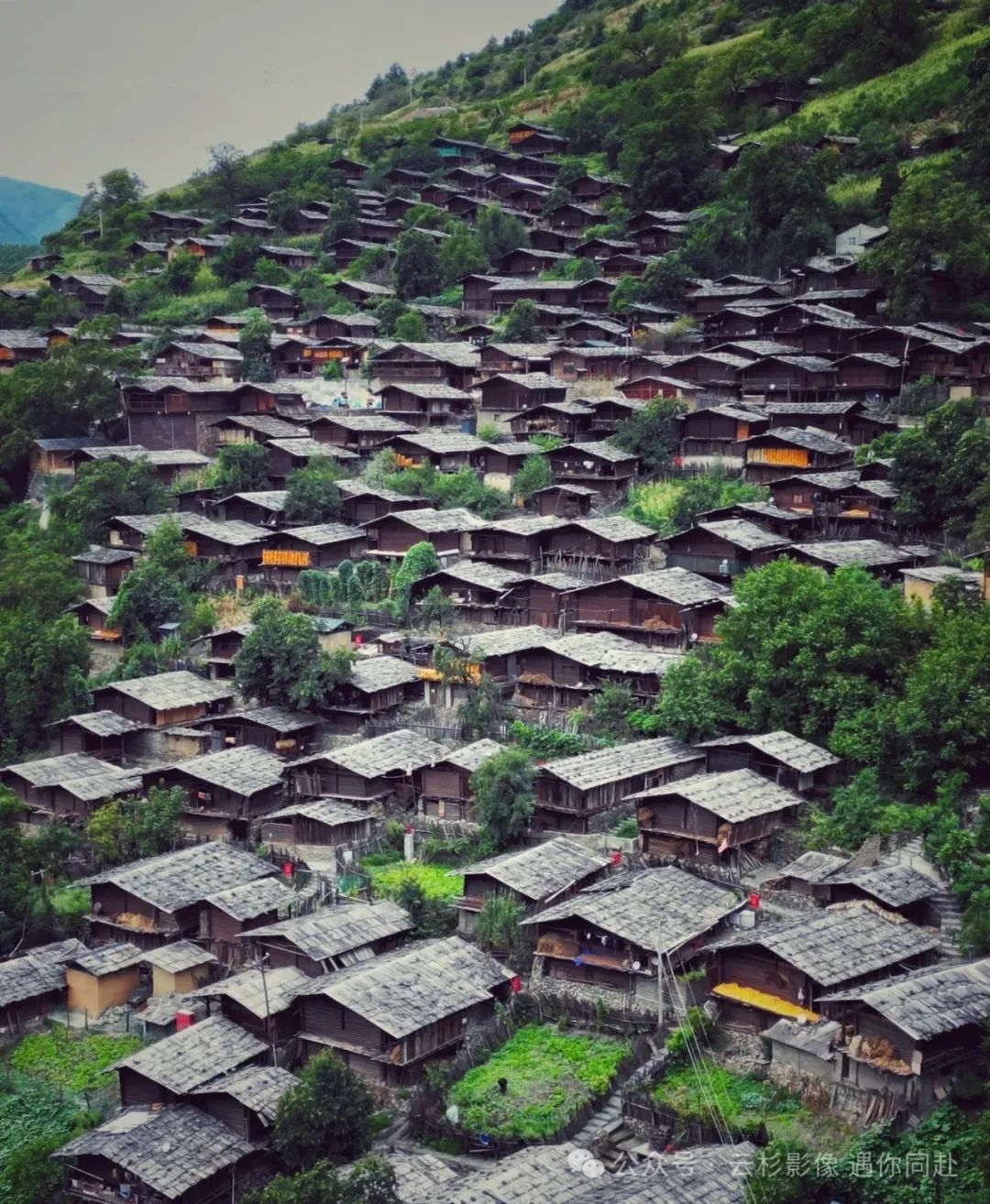 整个村寨修建在半山腰上,是一座典型的傈僳族村寨,整个村寨只有一百零六户居民,基本都是傈僳族人,也是维西县最古老的傈僳族山寨。村寨有房屋修建的非常密集,建筑房屋的材料非常特别,不是砖瓦石头,只是使用木头建造,屋顶木板做好之后压上石头便是特色屋顶。