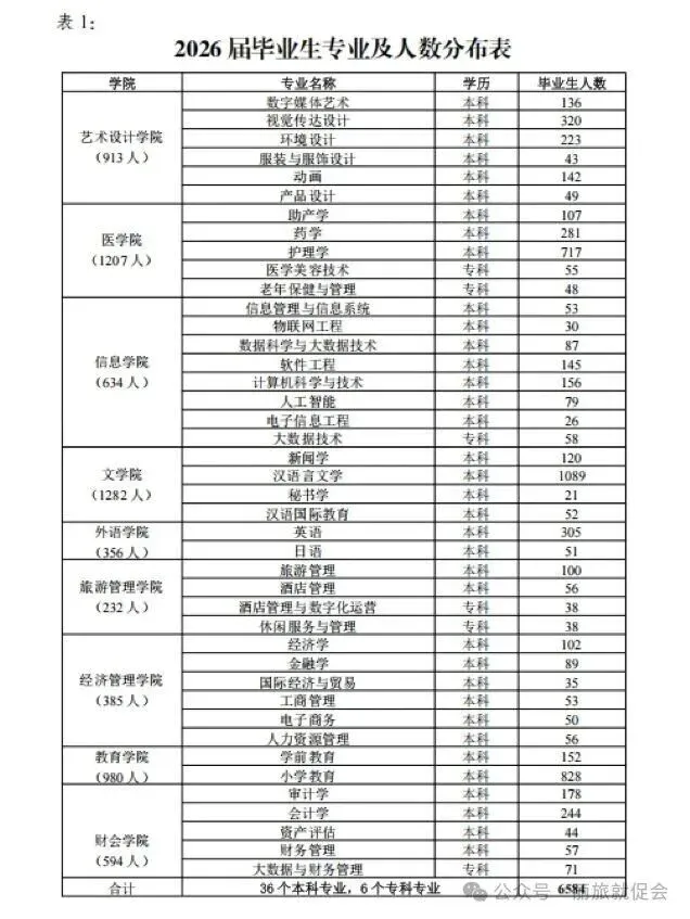 2026届毕业生共6584人,分布在36个本科专业和6个专科专业,生源涵盖全国29个省(自治区、直辖市),具体信息详见表1、2。