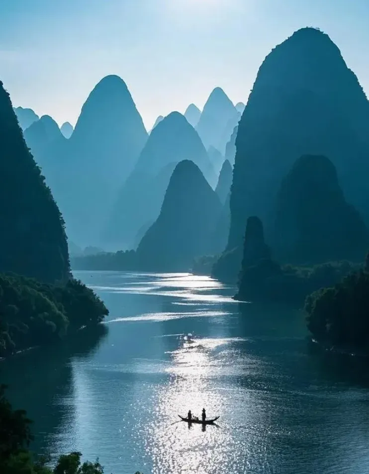 但你知道吗,冬天的漓江反而更有韵味。 3-4月枯水期水位低一些,露出河床的鹅卵石,阳光打在浅滩上波光粼粼。而且冬天的桂林经常有雾——漓江两岸的喀斯特峰林在雾气中时隐时现,就像一幅被打湿的山水画。