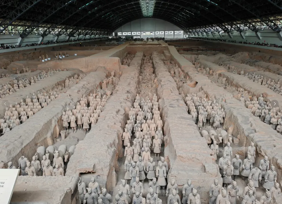 旺季去兵马俑是什么体验? 人头。全是人头。站在坑边往下看,一号坑的兵马俑阵列上面飘满了自拍杆和手机。你以为自己在看千年文物,其实你在看人。