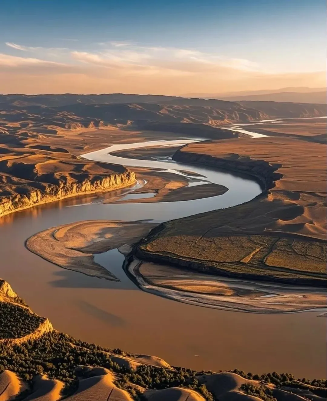 ❸ 傍晚时分,黄河反光——值哭