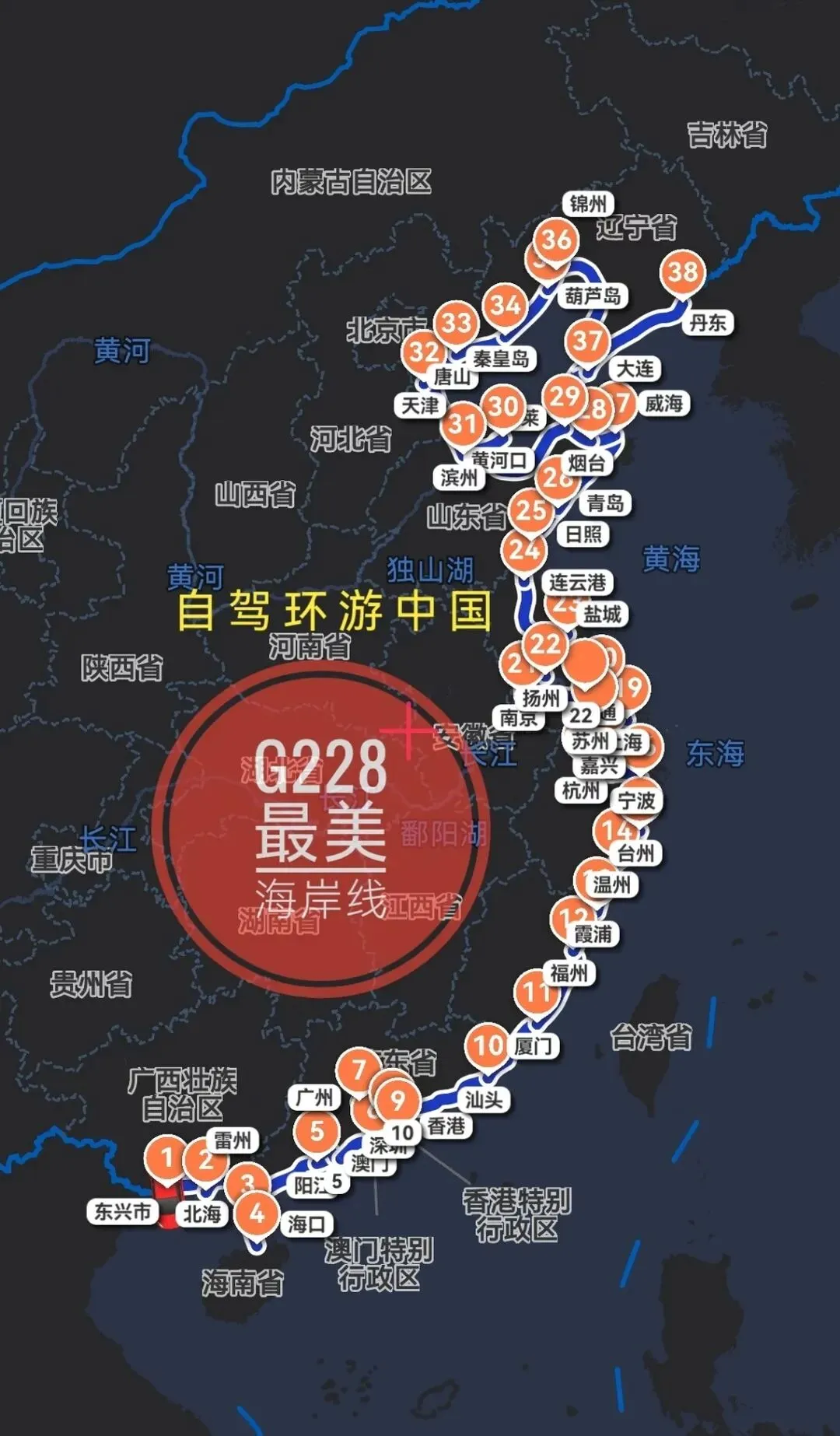从辽宁往下,一路贴着海开。