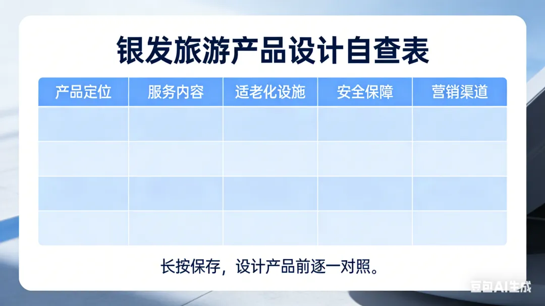 如果您也想进入银发旅游赛道,不妨用这张自查表进行自我评估: