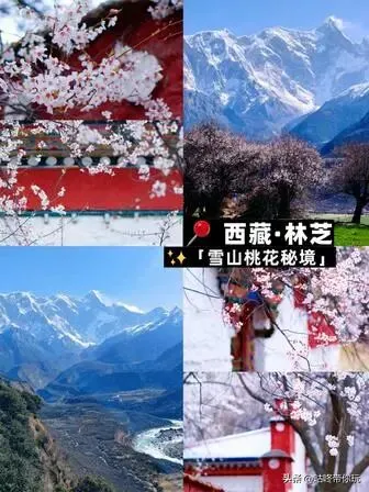 林芝(西藏)3 月中下旬雪山桃花盛放,粉色花海配南迦巴瓦峰。