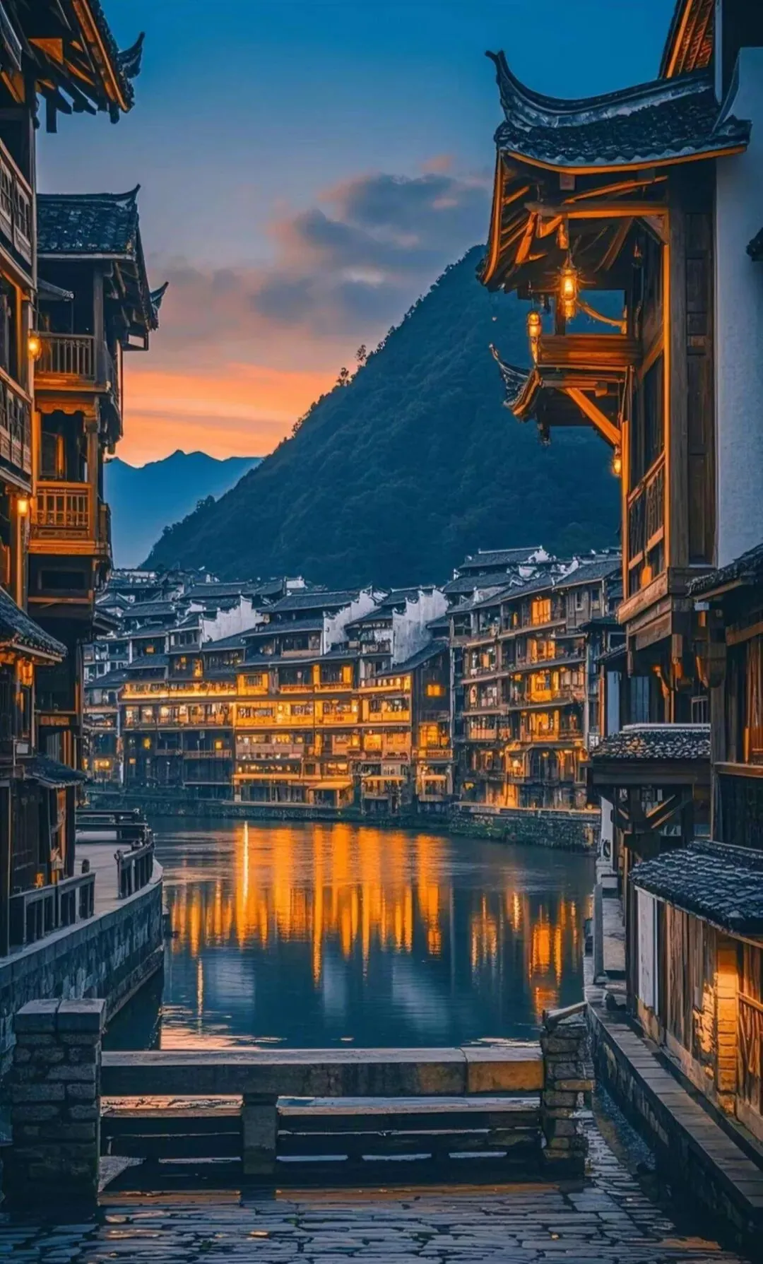 这镇子地形奇,.舞阳河在这拐.了个“.S”.弯,像个.太极图。河两.边.全是.老房子,黑瓦.翘檐,.密.密麻麻.挂.在山上。不用买.门票进那些宅院,就在河边走。天黑.后,.两岸红灯笼.亮起来.,倒.映在.河里,船从灯影里划过,比白天还好.看.。找家河岸.边的酸汤鱼店,坐在户外吃,.风是凉.的,汤是热的。