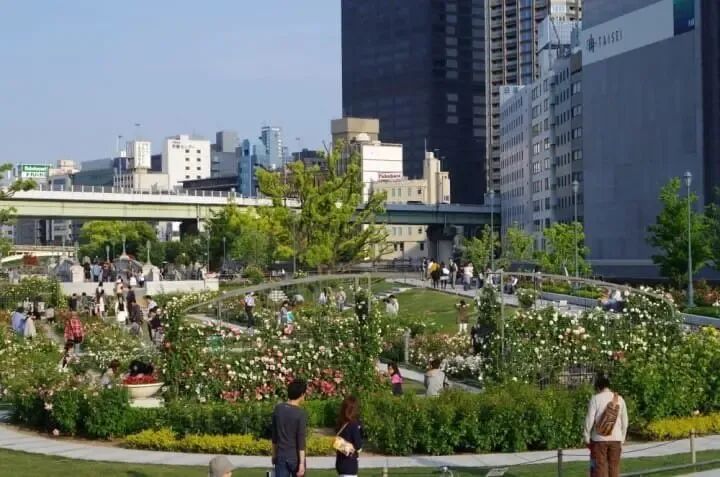 中之島公園東側的「中之島玫瑰園」約長500公尺,栽種約4,000株玫瑰。園內約有310個品種,紅、紫、白、黃等繽紛色彩的花朵盛開,能讓人心情寧靜放鬆。