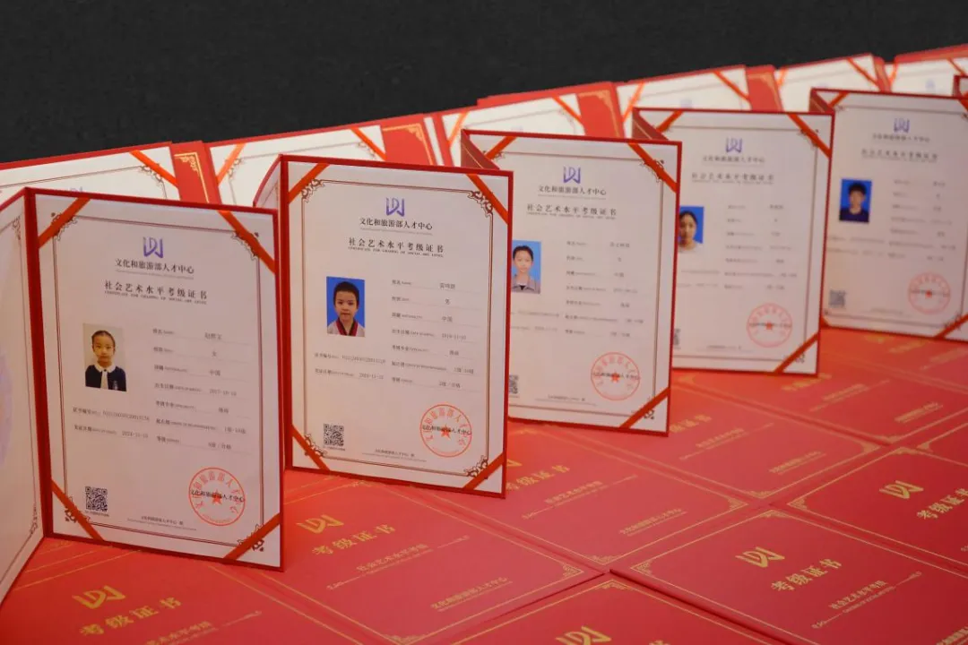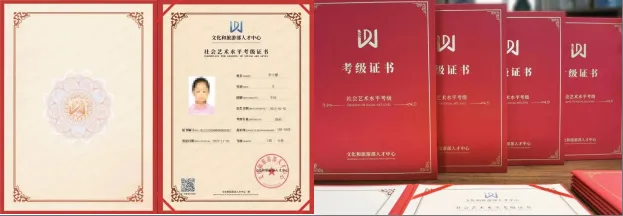 考级结束后,将对考级通过者颁发由文化和旅游部人才中心监制的文化和旅游部人才中心社会艺术水平考级证书。