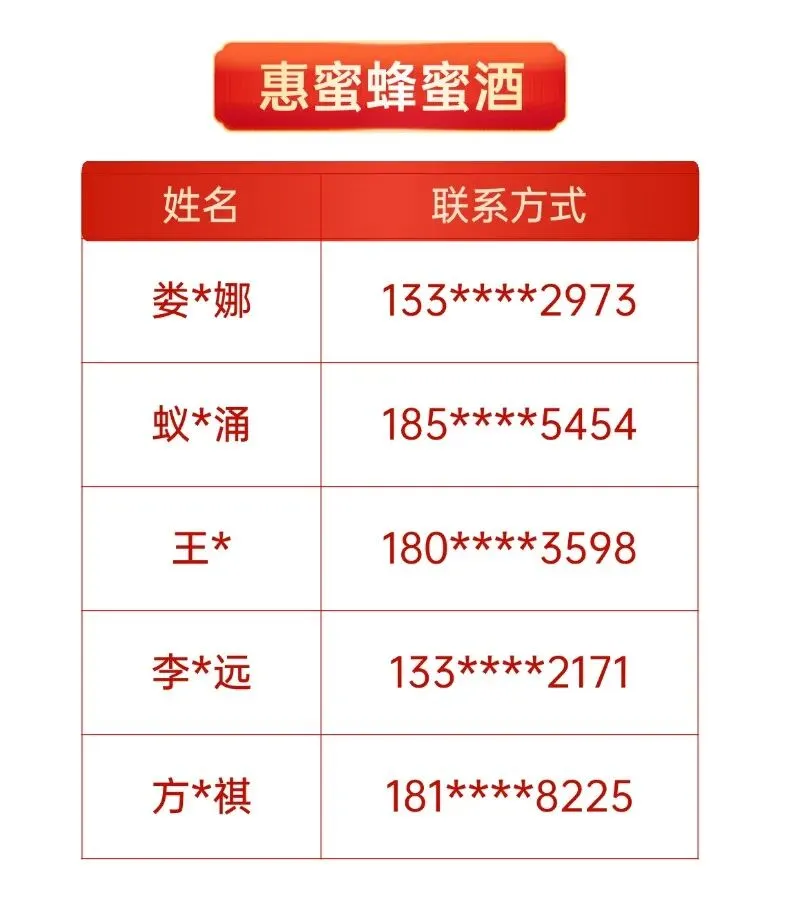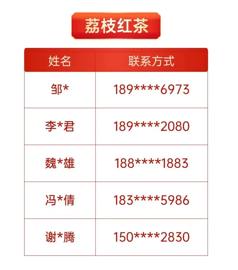 中奖名单如下