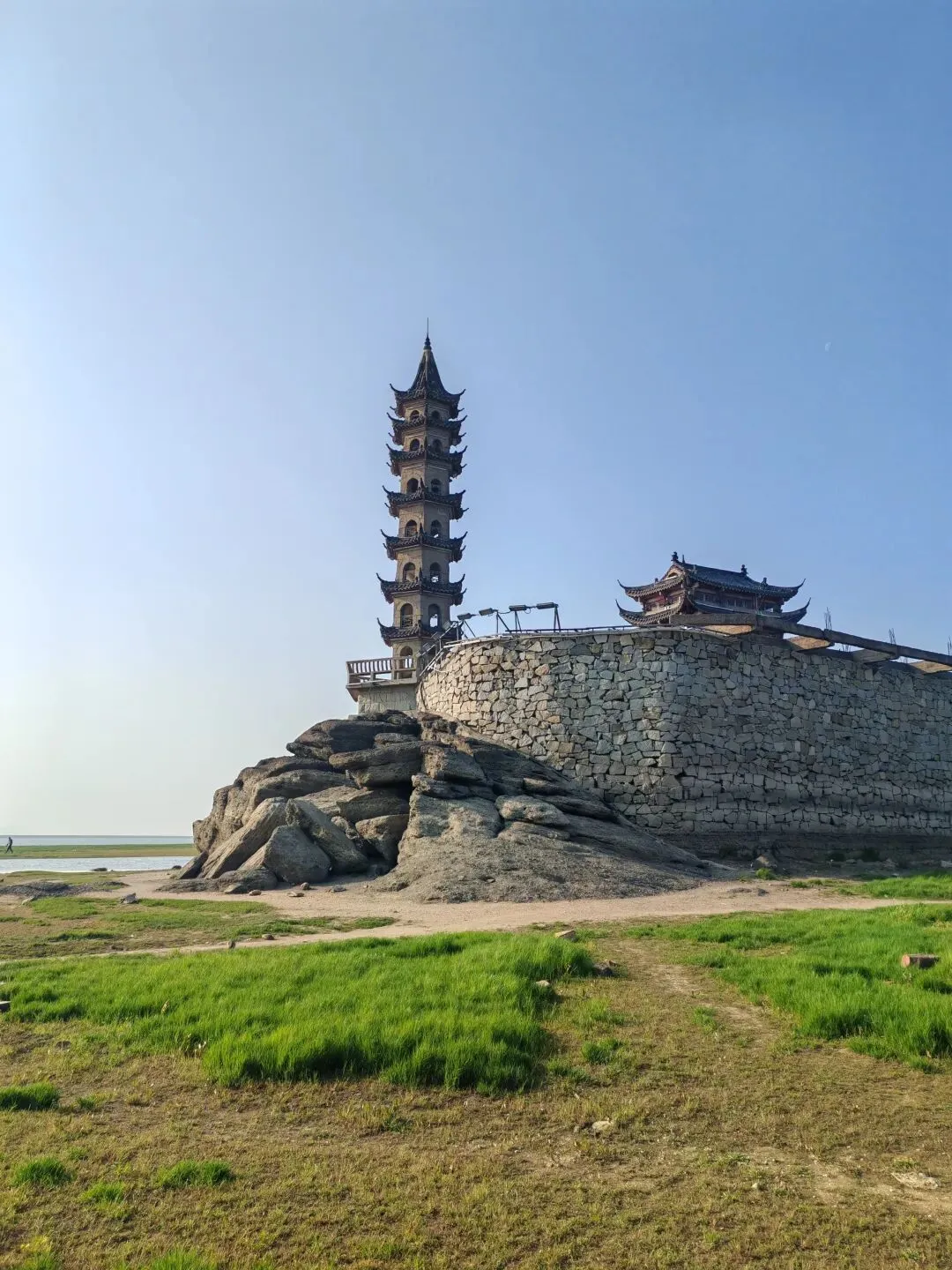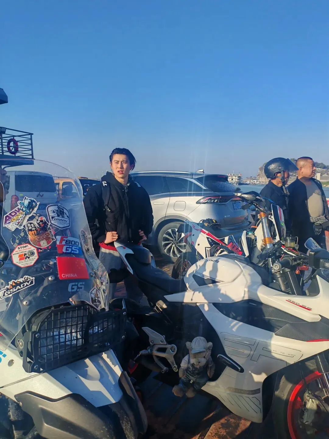 经渡口,到了庐山的流星山露营地,夜宿一晚,第三天看日出,庐山转了几圈,由于以前来过很多景点,三月庐山免费,我们也没有进去,庐山南门也不让摩托车进,枯水期落星墩还是很美
