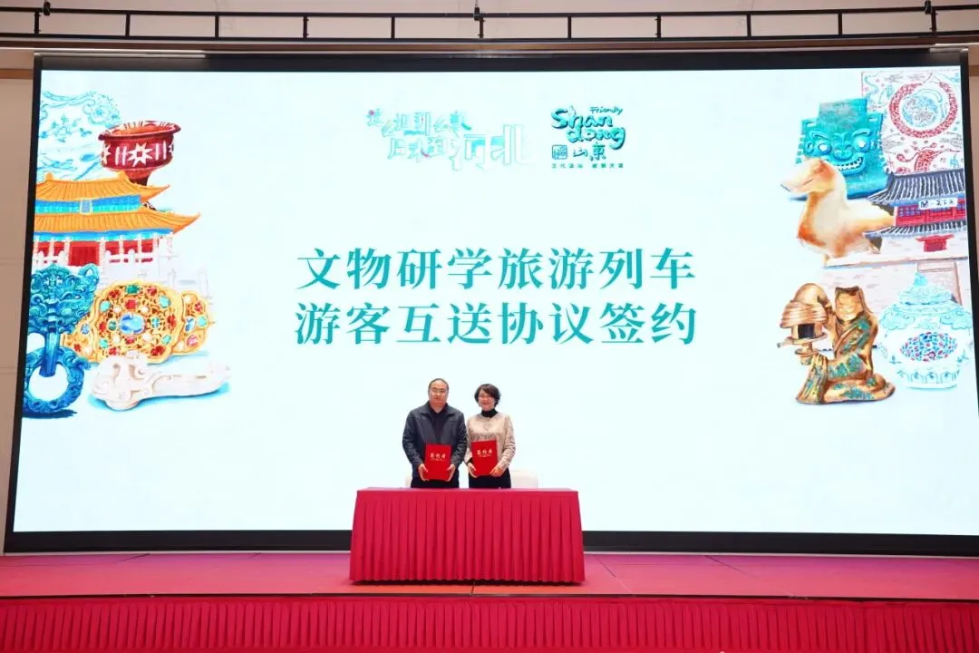 为了进一步推进鲁冀两省文旅企业资源对接、客源互送,来自鲁冀两地文旅企业、研学机构、旅行社等代表,围绕文物研学产品开发、客源互送、线路共建等精准对接。山东省旅行社协会、河北省旅游协会签订两省客源互送合作协议,拓宽了“齐鲁1号”列车的市场覆盖面,为推动文物研学旅游产业规模化、高质量发展注入动力。