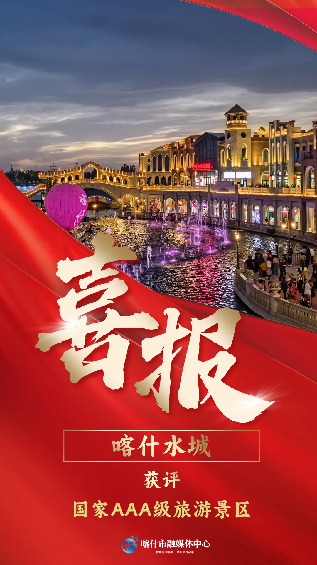 丝路明珠再添新彩,文旅融合谱写新篇。近日,经喀什地区旅游景区质量等级评定机构严格评审,喀什水城正式获评国家AAA级旅游景区。这标志着这座集亲水景观、文化体验、商业休闲于一体的南疆文旅新地标,在设施配套、服务质量、文化内涵等方面迈上了新台阶,开启了高质量发展的新篇章。