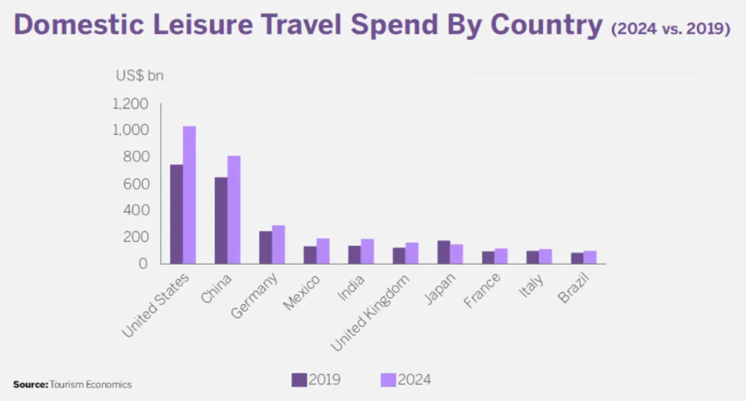 2024年全球国内休闲旅游市场前景预测:美国和中国位居前两名